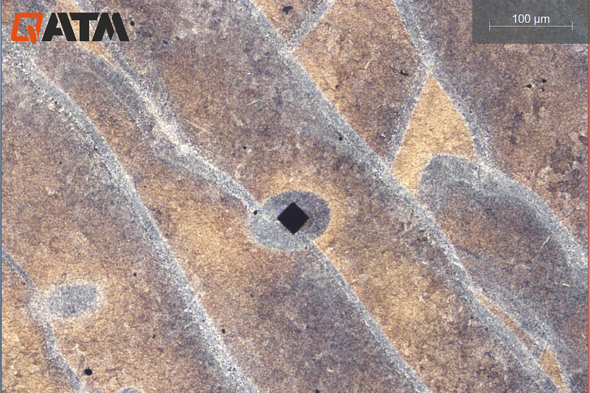 Weitere Untersuchungen, wie beispielsweise Härteprüfungen, erfordern eine ebene und glatte Oberfläche, um zuverlässige und aussagekräftige Ergebnisse zu erzielen. Der oben beschriebene materialografische Präparationsprozess stellt sicher, dass die Probe ideal für Härteprüfungen geeignet ist. QATM bietet hierfür den Härteprüfer Qness 60 A+ an, ein leistungsstarkes Gerät für Mikrohärteprüfungen und optische Auswertungen.