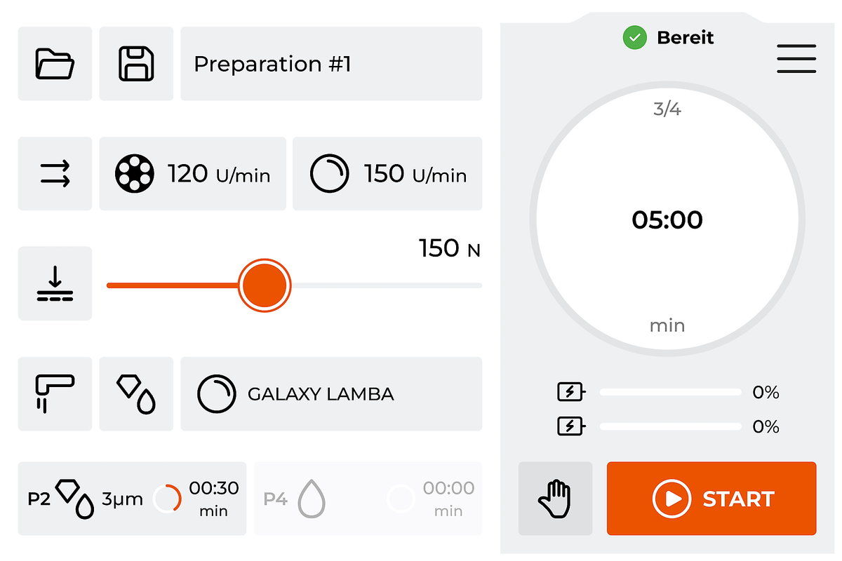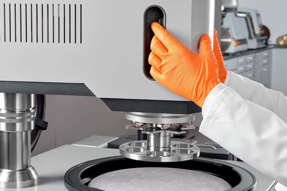 The PLUS grinding and polishing head delivers a contact pressure of 5–80 N in single pressure mode and 20–350 N in central pressure mode. Up to 6 samples with a diameter of 50 mm can be prepared at variable speeds using sample holders with a diameter of 160 mm, either in the same or opposite directions. In addition, thanks to the L-type sample holders, central-pressure sample holders with a diameter of up to 185 mm can also be used.
