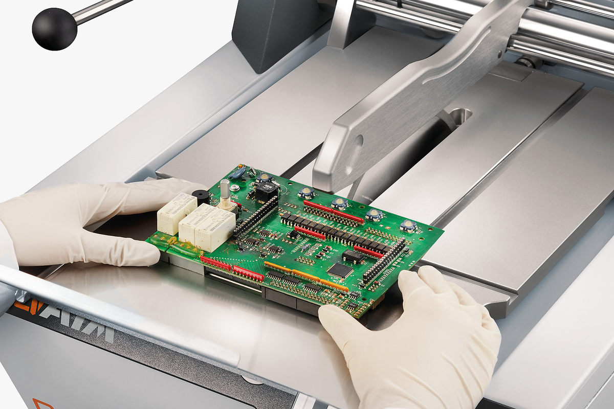The compact benchtop model performs automatic as well as manual cuts with the ergonomic lever. The optional sample holder arm with built-in force sensor ensures low-deformation cuts due to a precise force-controlled feed rate.