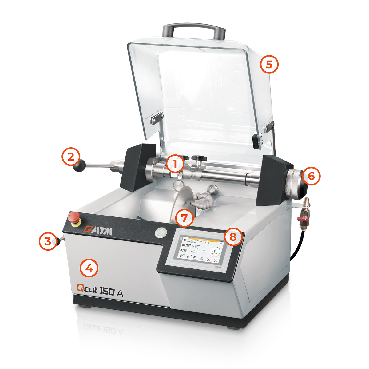 The Qcut 150 A is a flexible precision cut-off machine which is used with cut-off wheels up to a diameter of 203 mm/8”.