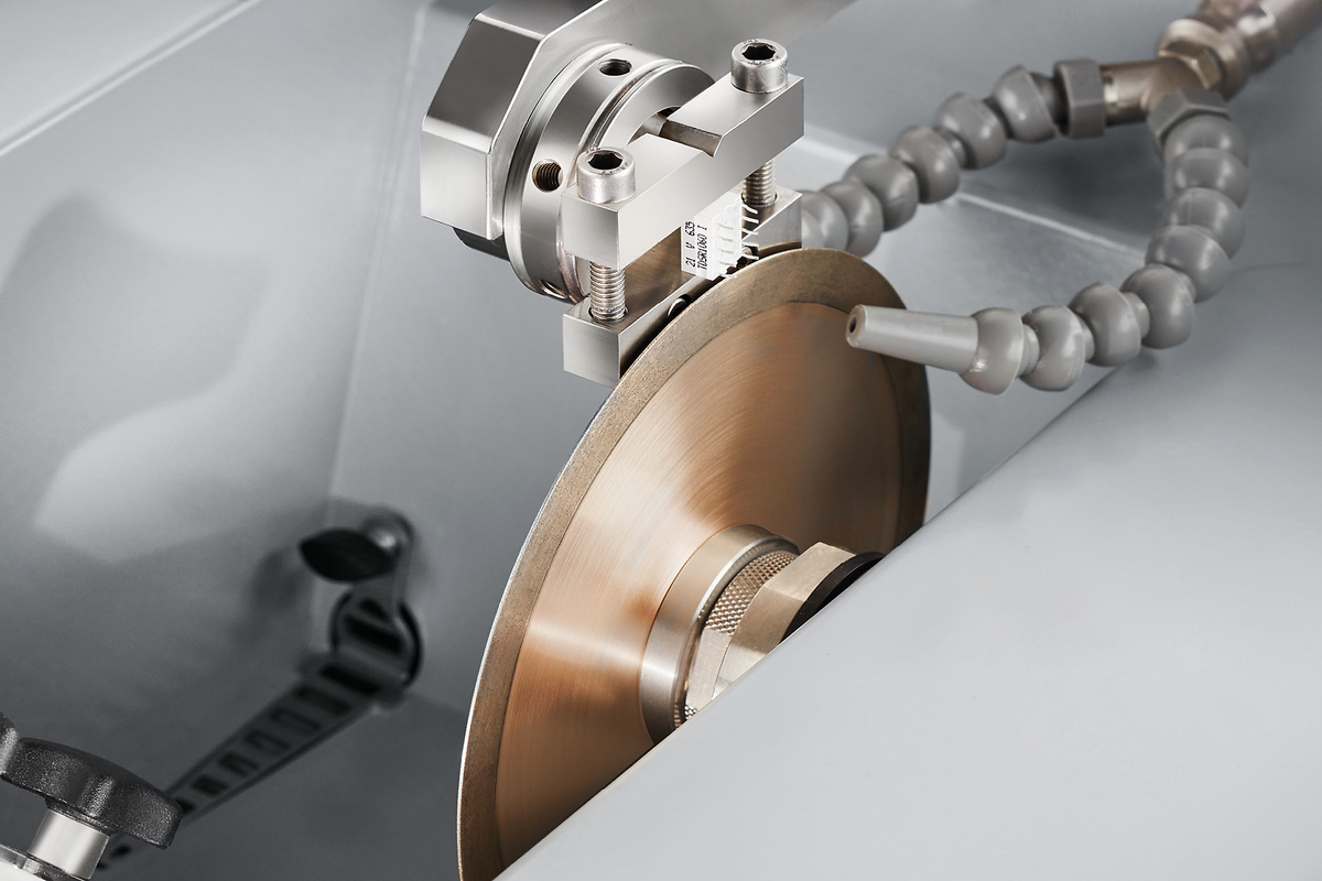 With the help of a suitable clamping tool from the extensive range of accessories, mounted or non-mounted samples up to a size of Ø 40 mm can be clamped in the cut-off machine comfortably