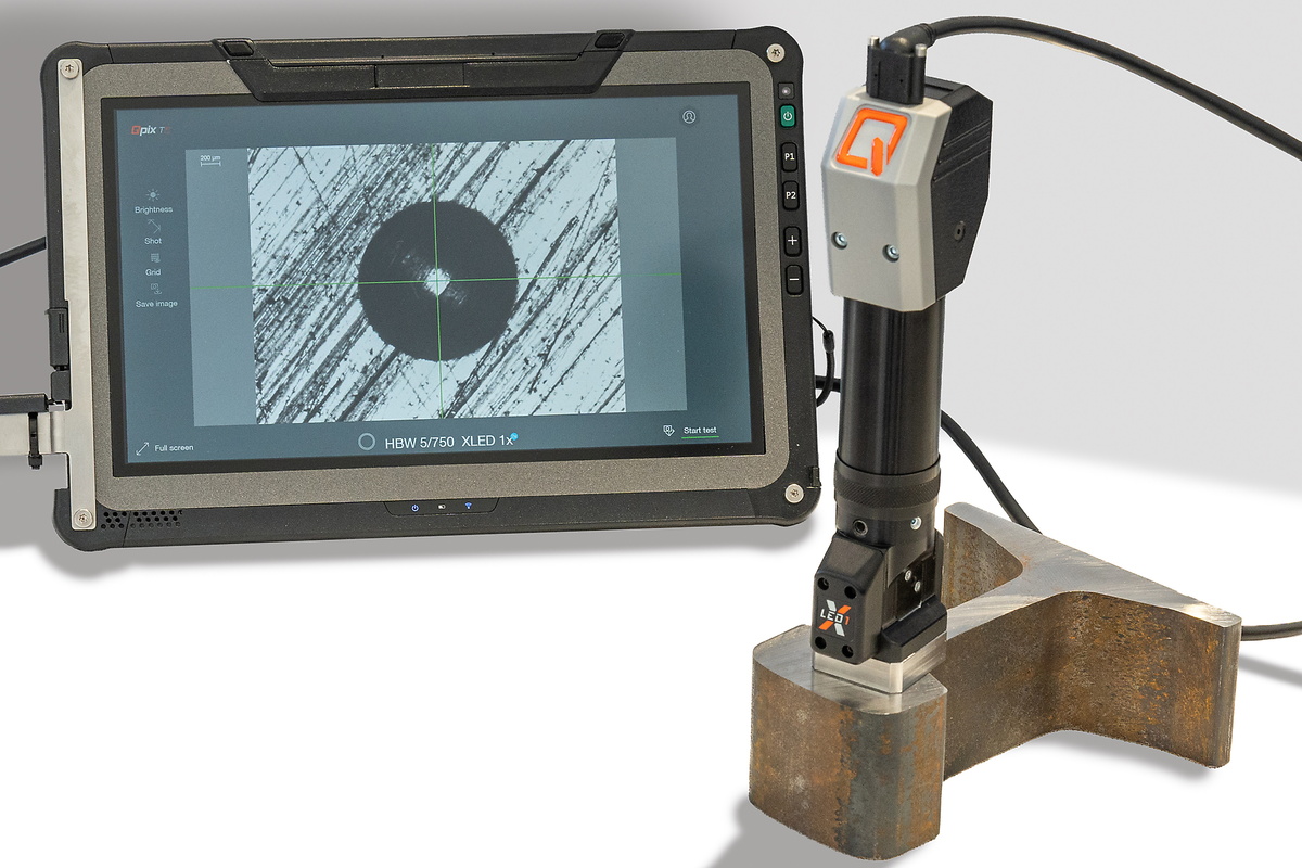 Qmobile EVO is a mobile image evaluation unit for standard-compliant Brinell evaluation in accordance with DIN EN ISO 6506 and ASTM E-10. The user-friendly Qpix T2 software runs on an industrial tablet and enables testing directly in the field for fast data acquisition and quality control.