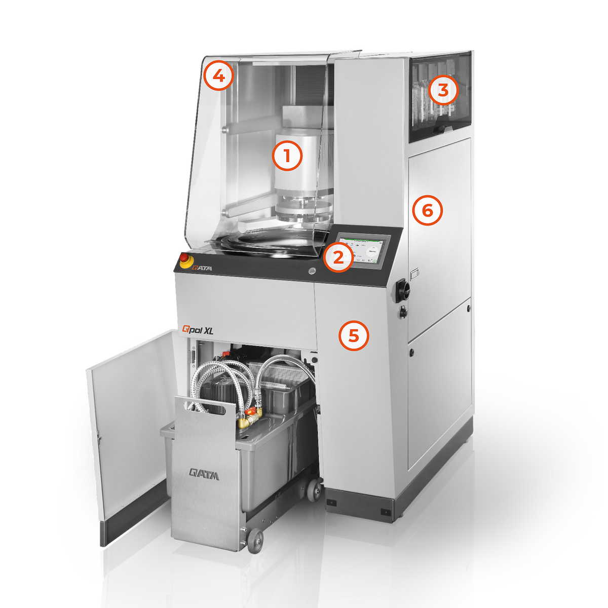QATM Qpol XL поставляется со встроенной системой точного измерения высоты снятия материала - независимо от времени работы, типа образца, материала и твердости вы можете легко контролировать процесс шлифовки и полировки.